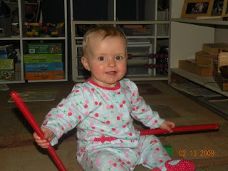 She is also addicted to pulling herself up..and subsequently to pulling things down. I have a feeling she will be cruising along the couch soon. Oh Nelly.