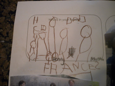 We are having a rainy Labor day so Henry and I spent some time doing his homework. It is amazing to see the difference in what he can draw and write from last year. It is surreal to think that last year Francie was just a couple months old and just starting to stay awake longer.....this year.... she was standing on top of the table that we were trying to work on. Last year, Henry did simple stick figures and this year his self portrait had a rounded face with a number shirt.