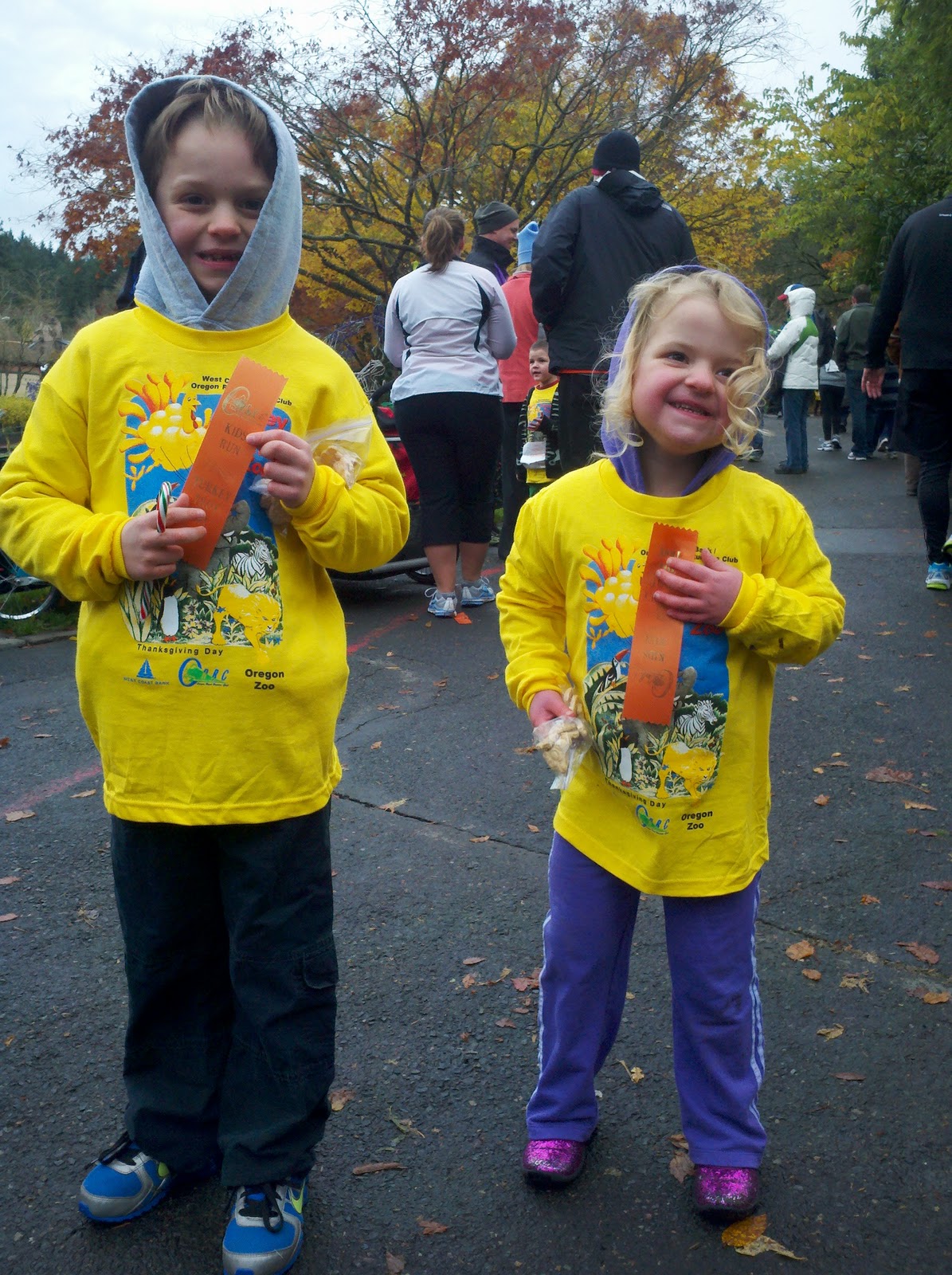 Then Mark and the kids joined us so that the they could do the Tot Trot. Frances and Henry rocked it and they loved the prizes they received at the end (chocolate turkey and candy cane). Why do they always end athletic events for kids with bad food?